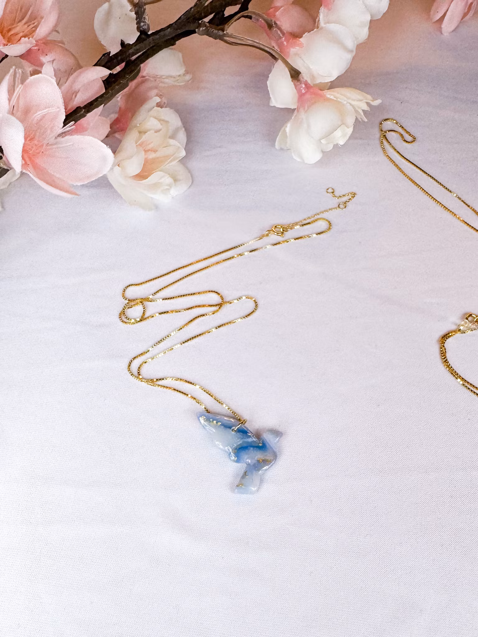 Halskjede i gullbelagt ekte sølv med dueanheng som peker mot hjertesiden.