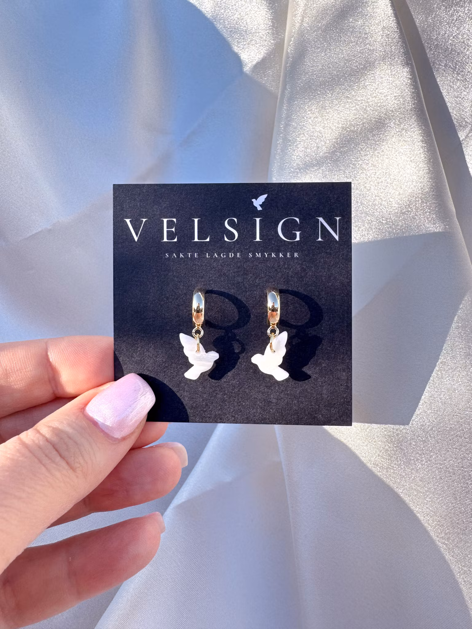For første gang får du duen hengende fra en huggie som alternativ. Eller du kan få den som dobb rett på øret.